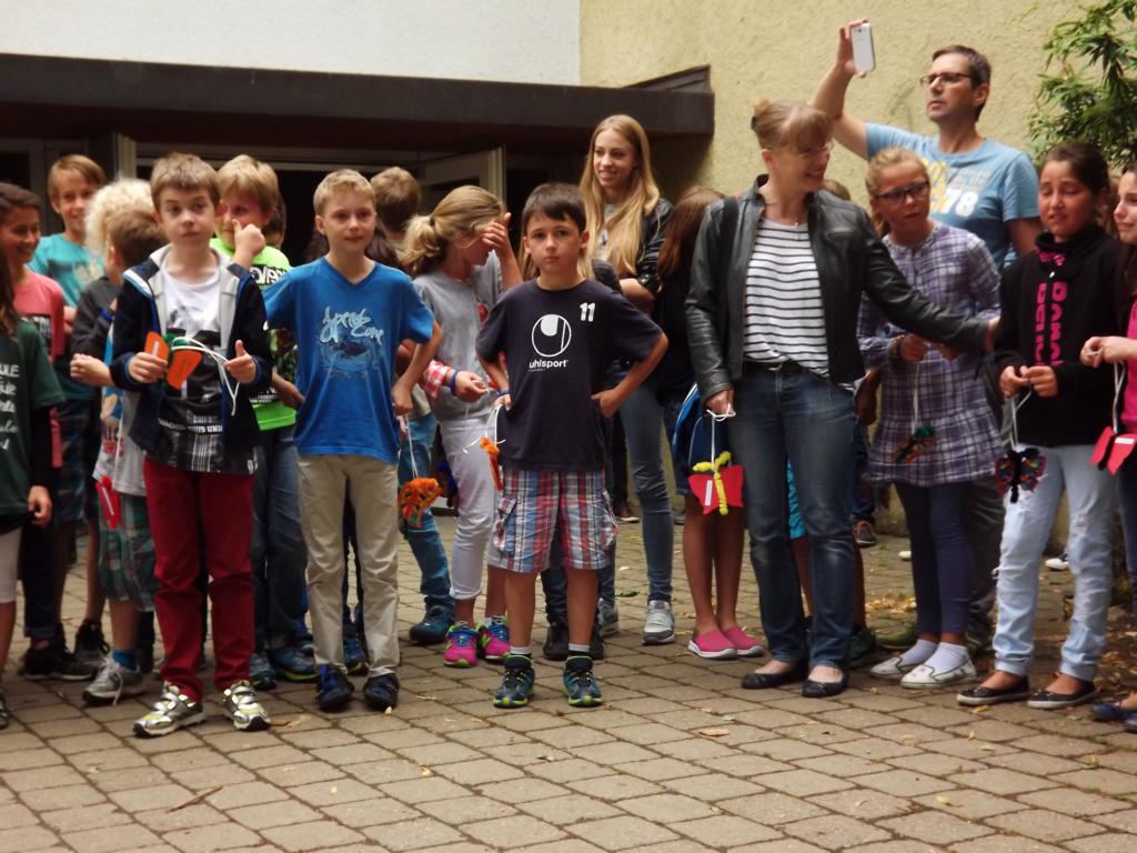 DSCF6627 DSCF6628 DSCF6629 DSCF6635 DSCF6645Die beiden 4.Klassen sangen aus vollem Hals ihr Abschiedslied unter der musikalischen Begleitung von Herrn Spinner. Manche mussten dabei eine Träne Abwischen. Rektorin Frau Bantlin verabschiedete sich von den Kindern und egal in welche Richtung sie gingen, wünschte sie allen viel Erfolg.