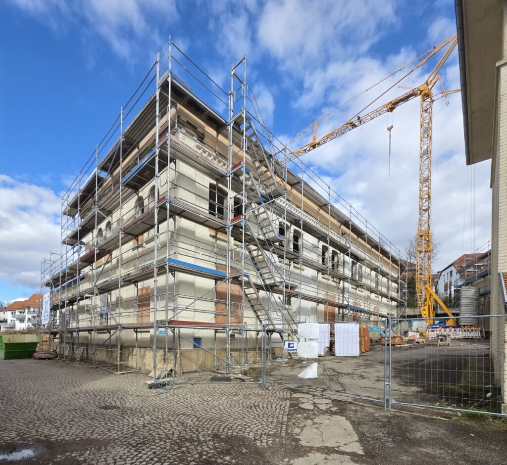 Das Batteurgebäude ist eingerüstet und erwacht aus dem Dornröschenschlaf.