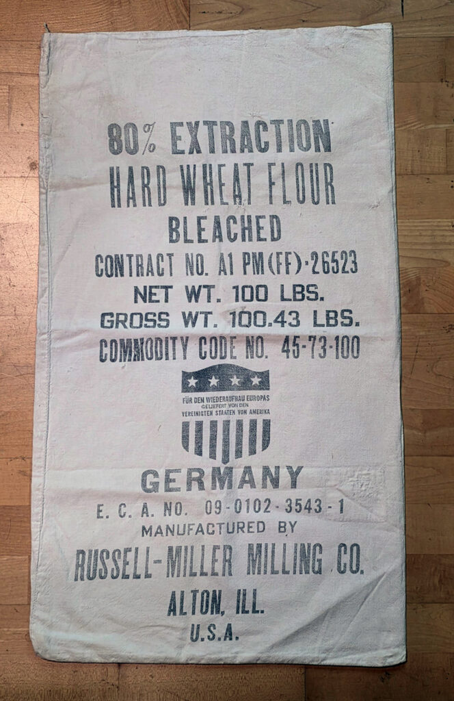 Historischer Mehlsack der Russell-Miller Milling Co. aus den USA, der während des Wiederaufbaus in Deutschland verwendet wurde.