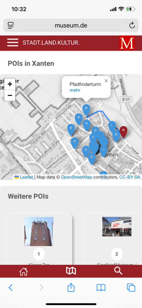 Das Warten auf den technischen Fortschritt hat sich gelohnt. Das bundesweite Museumsportal museum.de, ein zentraler Anlaufpunkt für kulturinteressierte Menschen, startete im November 2023 das Projekt STADT.LAND.KULTUR. Ziel dieses Projekts ist der Aufbau einer deutschlandweiten Kulturkarte, die im Zusammenspiel der Städte und Gemeinden die historischen und kulturellen Highlights jeder einzelnen Kommune sichtbar macht. Die Informationen sind sowohl am Computer als auch mobil über das Smartphone abrufbar. Mit „Museum.de“ fanden wir eine Plattform, auf welcher wir unsere Daten selbst verwalten können.