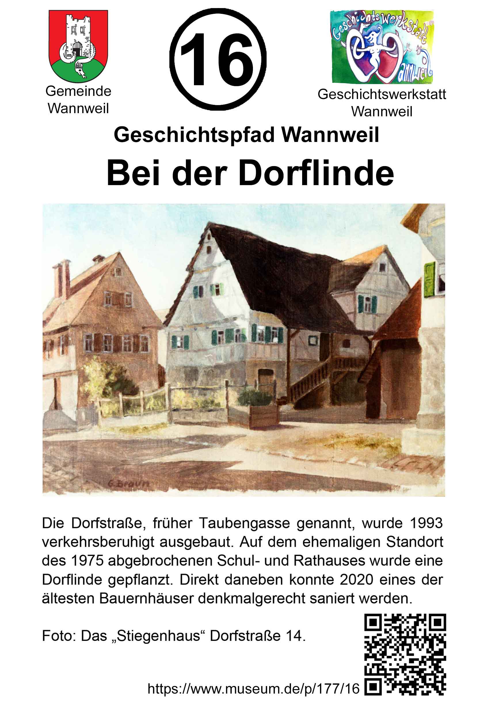Geschichtspfad – Station 16 Station 16 – Bei der Dorflinde Link zu unserer Onlinepräsentation auf museum.de: https://www.museum.de/p/177/16