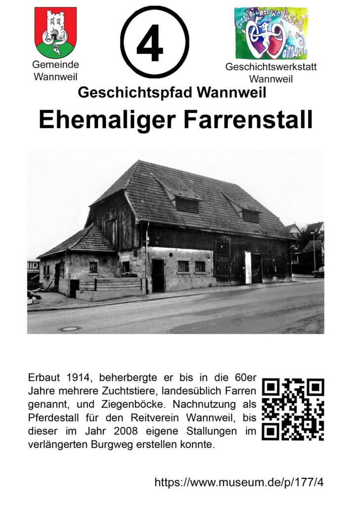 Geschichtspfad – Station 4 Station 4 – Ehemaliger Farrenstall Link zu unserer Onlinepräsentation auf museum.de: https://www.museum.de/p/177/4